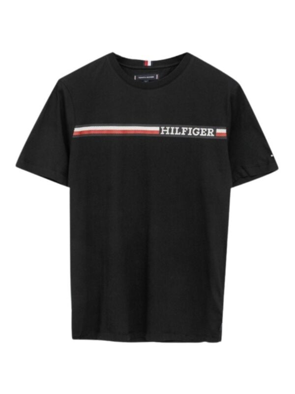 Muška crna Tommy Hilfiger majica kratkih rukava s kontrastnim prugama i logo printom