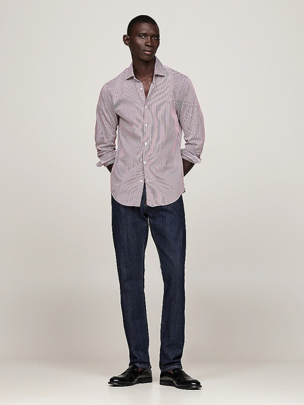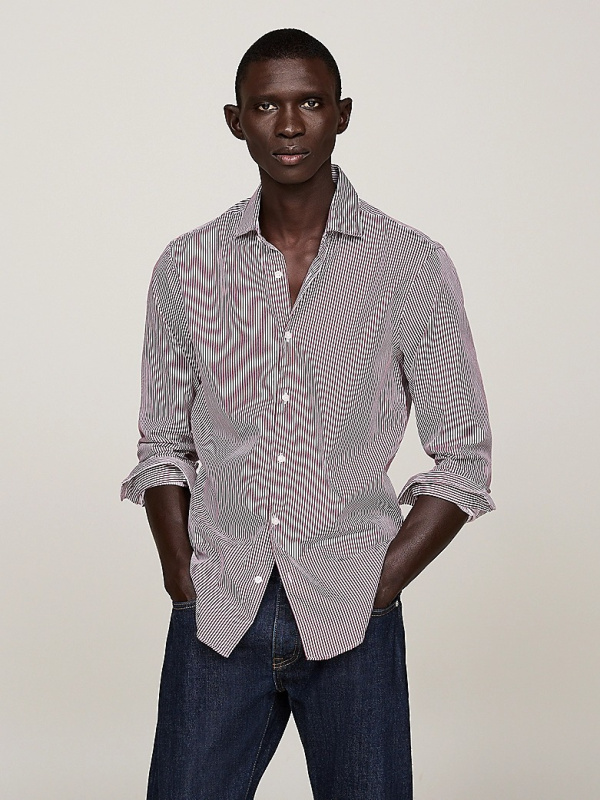 Muška Tommy Hilfiger košulja od poplina u kombinaciji bordo (deep rouge) i bijele boje