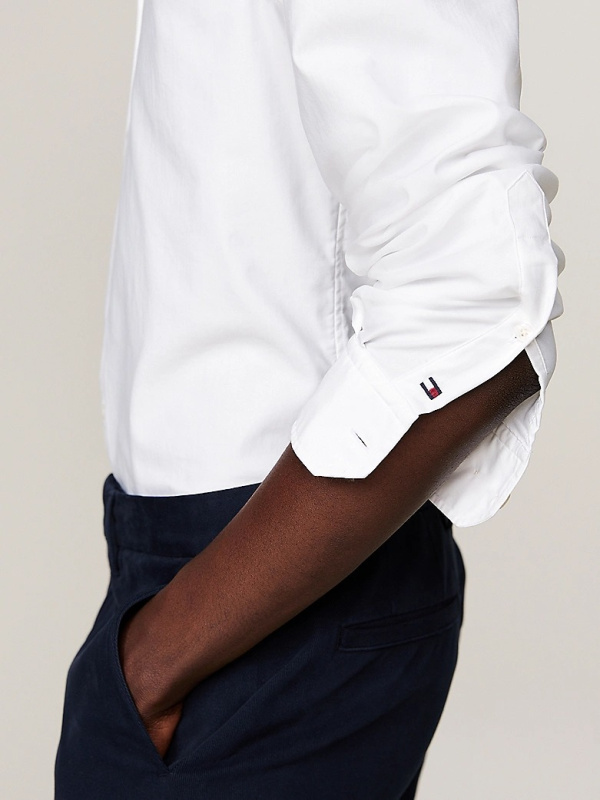 Izdašna rastezljivost i elegantna estetika čine ovu pamučnu poplin košulju svestranim dodatkom vašoj elegantnoj i ležernoj garderobi.