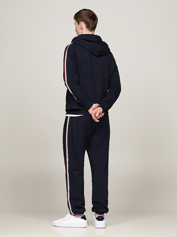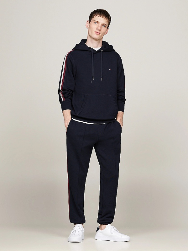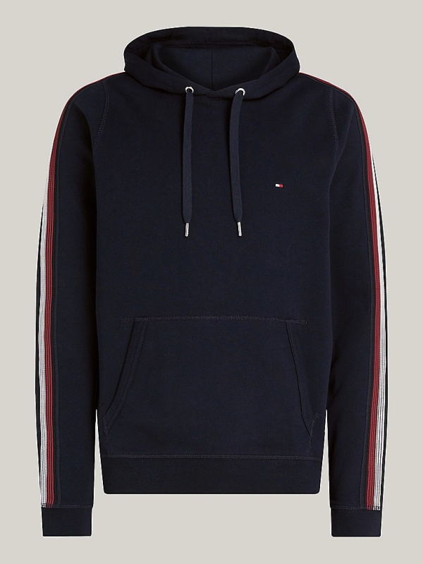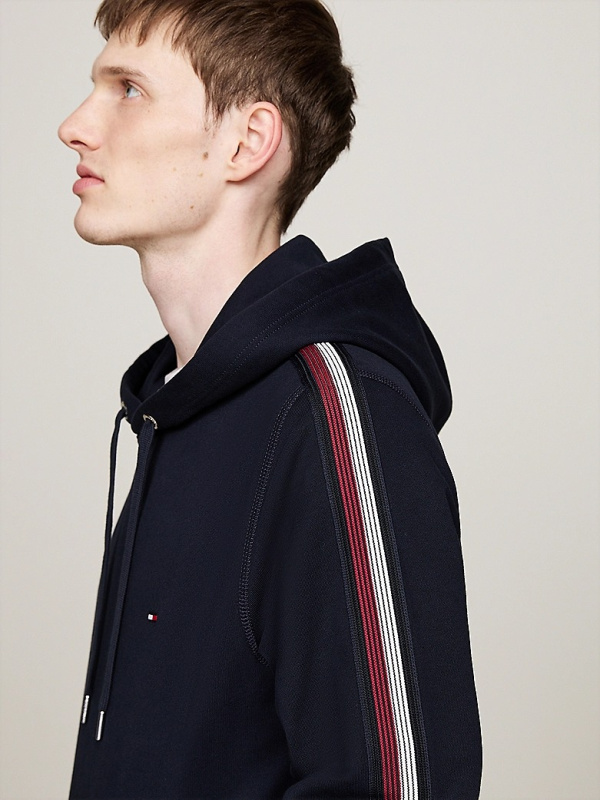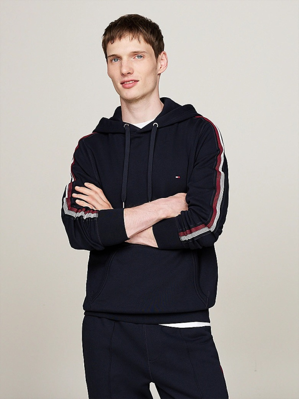 Muška tamnoplava Tommy Hilfiger dukserica s kapuljačom i prugama na rukavima