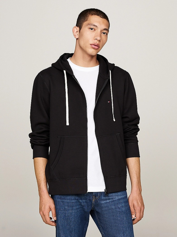 Muška crna Tommy Hilfiger dukserica sa patentnim zip zatvaračem i kapuljačom