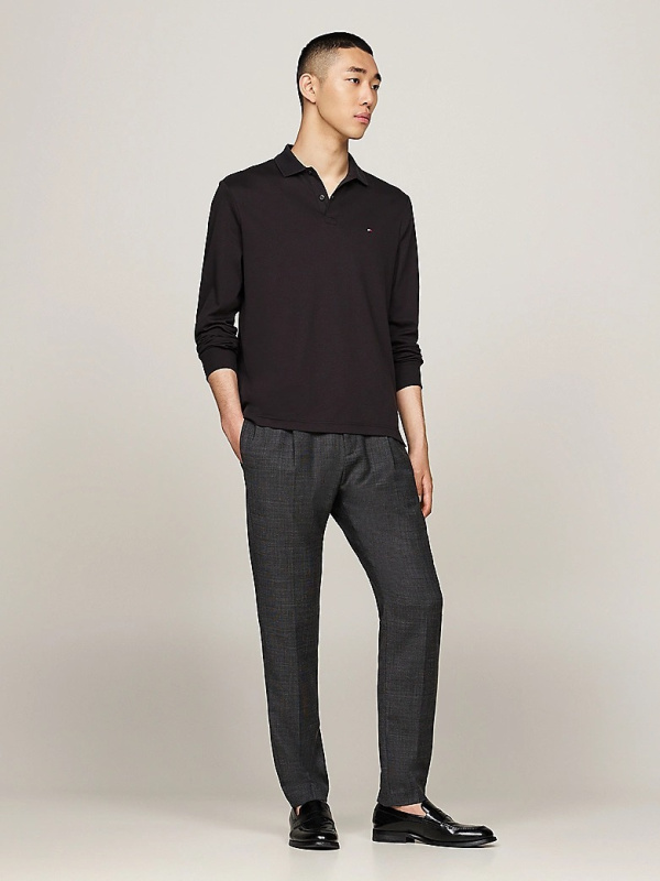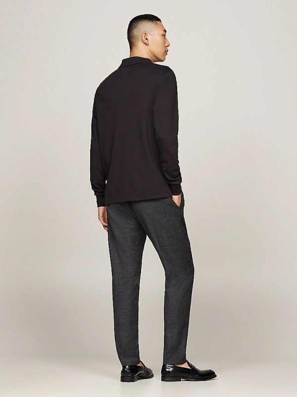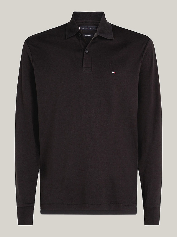 Muška crna Tommy Hilfiger polo majica dugih rukava s malim logom na prsima