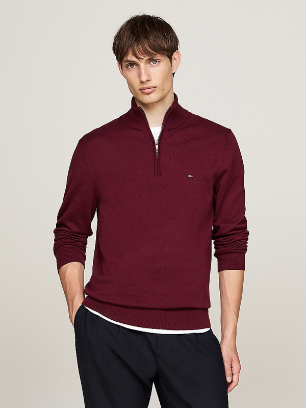 Muški bordo Tommy Hilfiger džemper sa poluzatvaračem