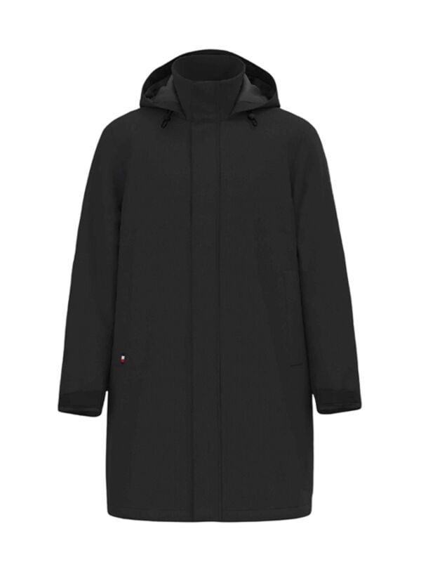Muški crni Tommy Hilfiger kaput s kapuljačom i zipom