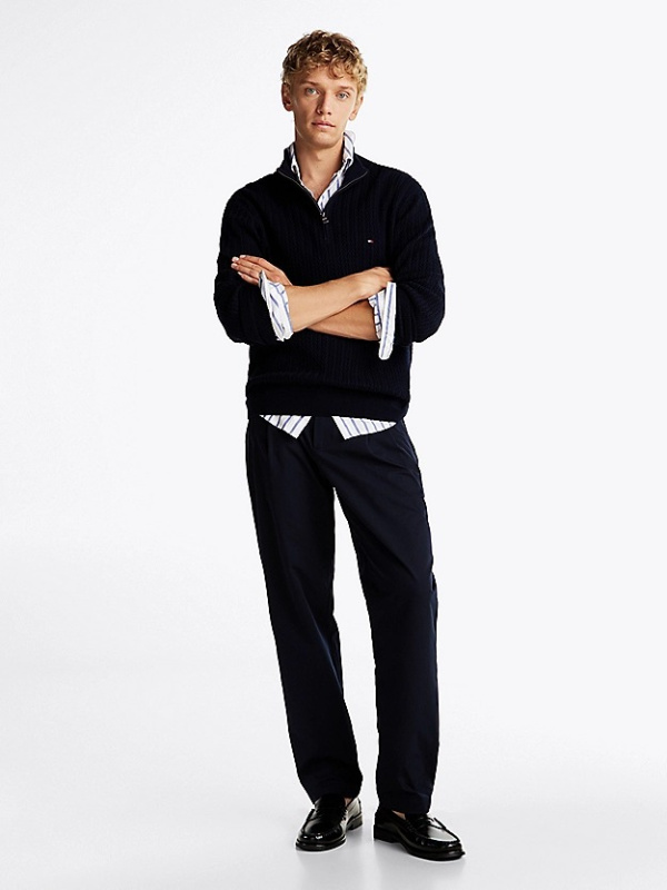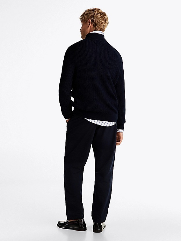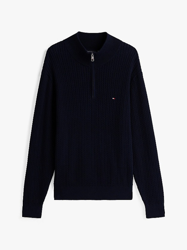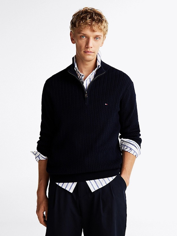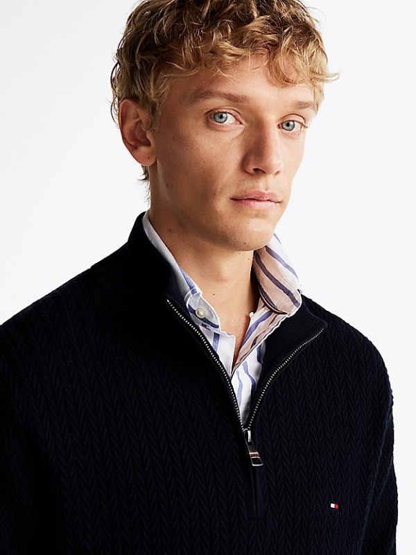 Muški tamnoplavi Tommy Hilfiger pulover na zp kopčanje do pola