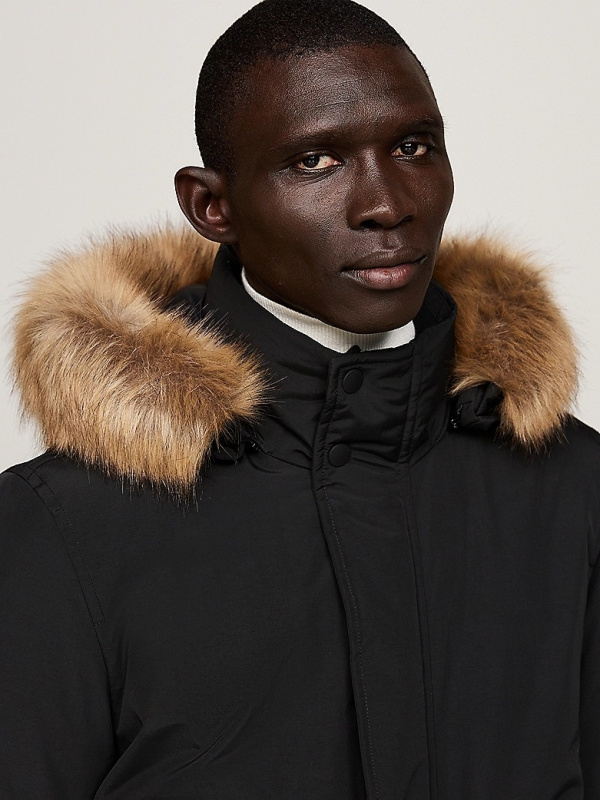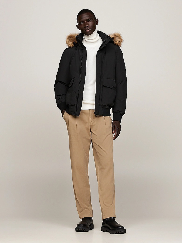 Muška crna Tommy Hilfiger rockie bomber jakna s umjetnim krznom