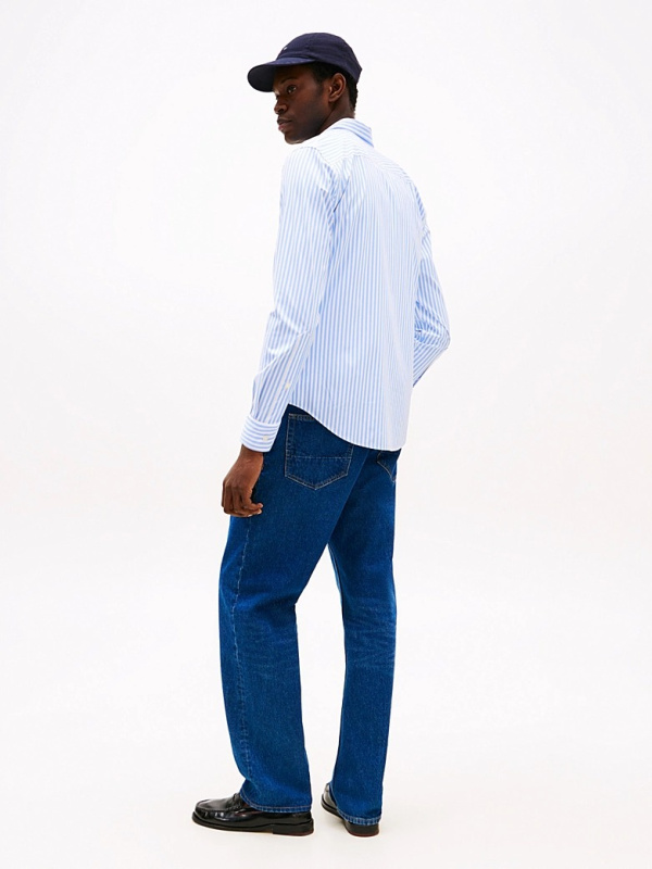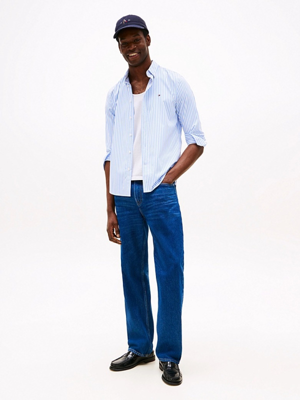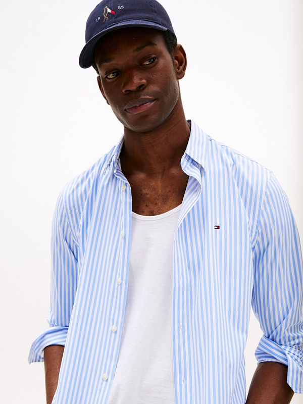 Muška svijetloplava Tommy Hilfige košulaj dugih rukava na pruge s logom na prsima