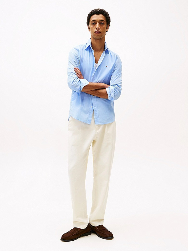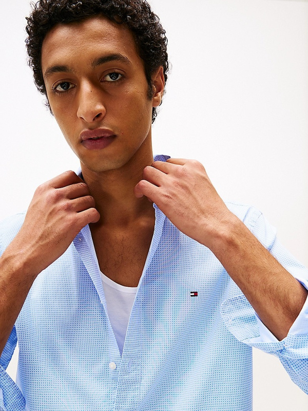 Muška svijetloplava Tommy Hilfiger košulja dugih rukava s uzorkom i logom na prsima