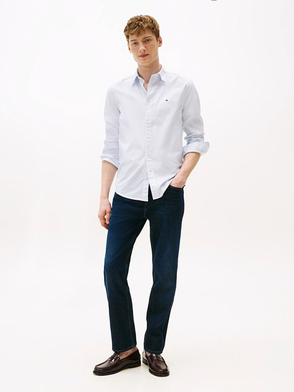 Muška bijela Tommy Hilfiger košulja dugih rukava s mikro uzorkom i logom na prsima