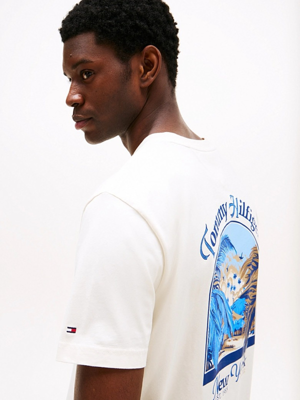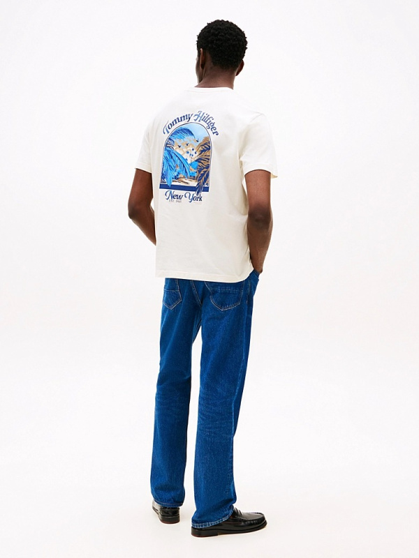 Muška krem-bijela Tommy Hilfiger majica kratkih rukava s logom na prsima i printom na leđima
