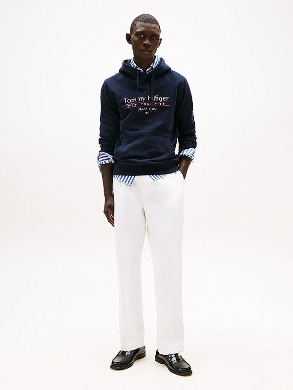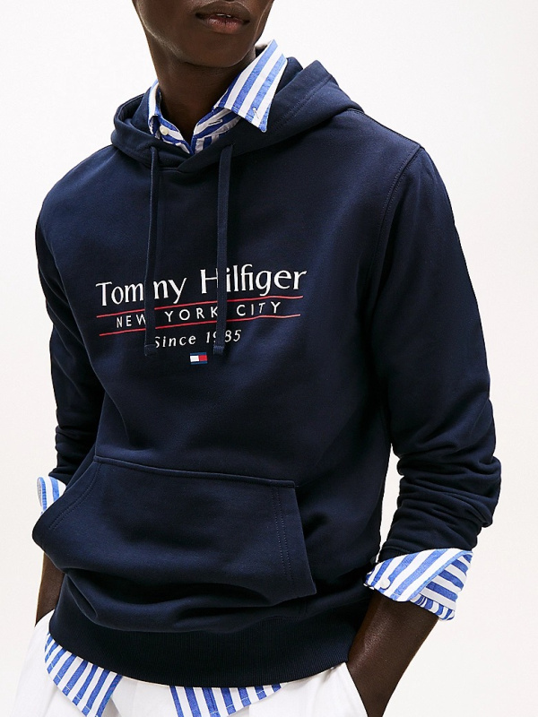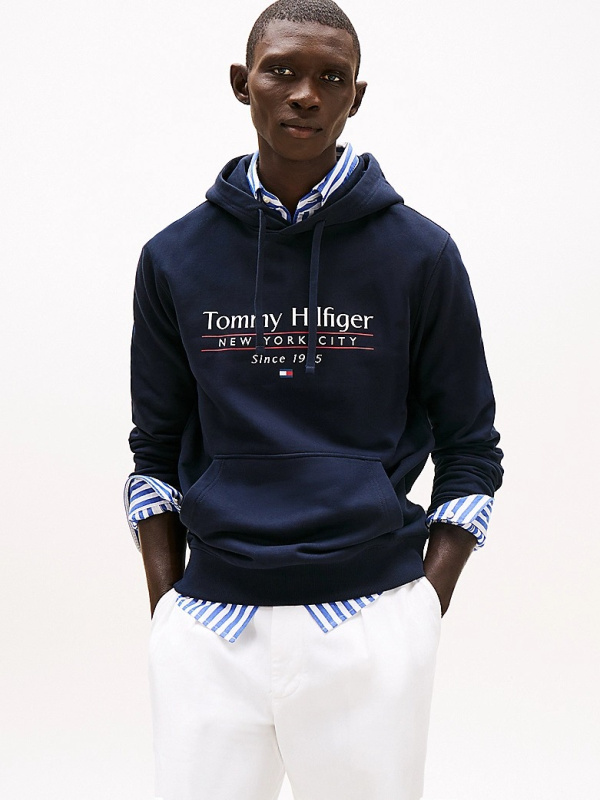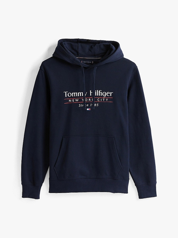Muška tamnoplava Tommy Hilfiger dukserica s kapuljačom i logo printom na prsima