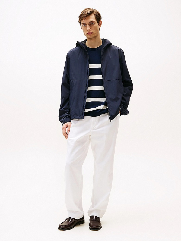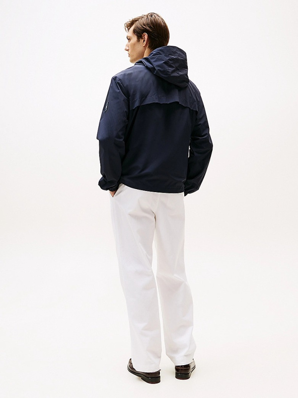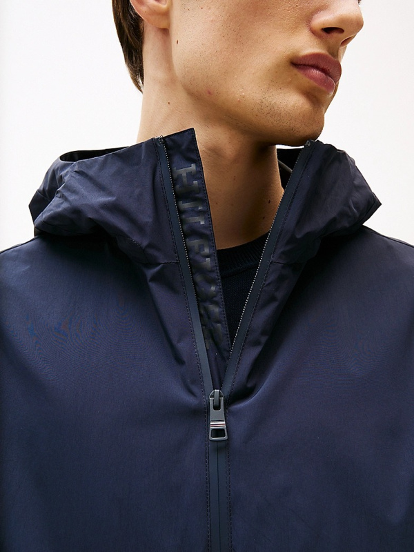 Ostanite zaštićeni od kiše u ovoj brendiranoj vodoodbojnoj jakni, s kapuljačom i elastičnim manšetama za dodatnu otpornost na vremenske uvjete.