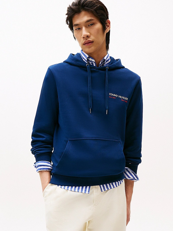 Muška tamnoplava Tommy Hilfiger dukserica s logom na prsima i printom na leđima