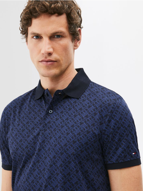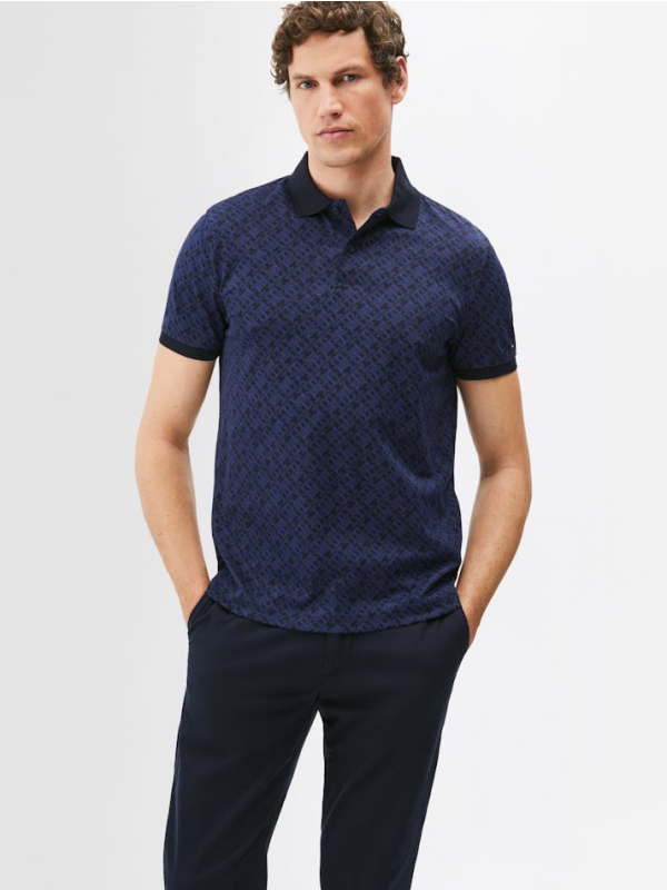 Muška tamnoplava Tommy Hilfiger polo majica kratkih rukava s monogramskim all-over printom