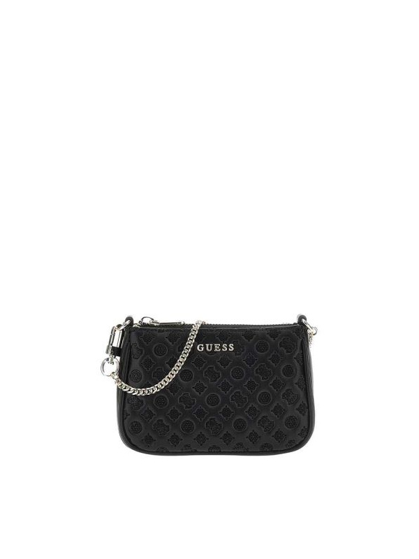 Guess mini crna ženska torba koja se može nositi kao neseser zahvaljujući lancu sa kukicom i malim dimenzijama