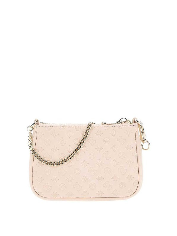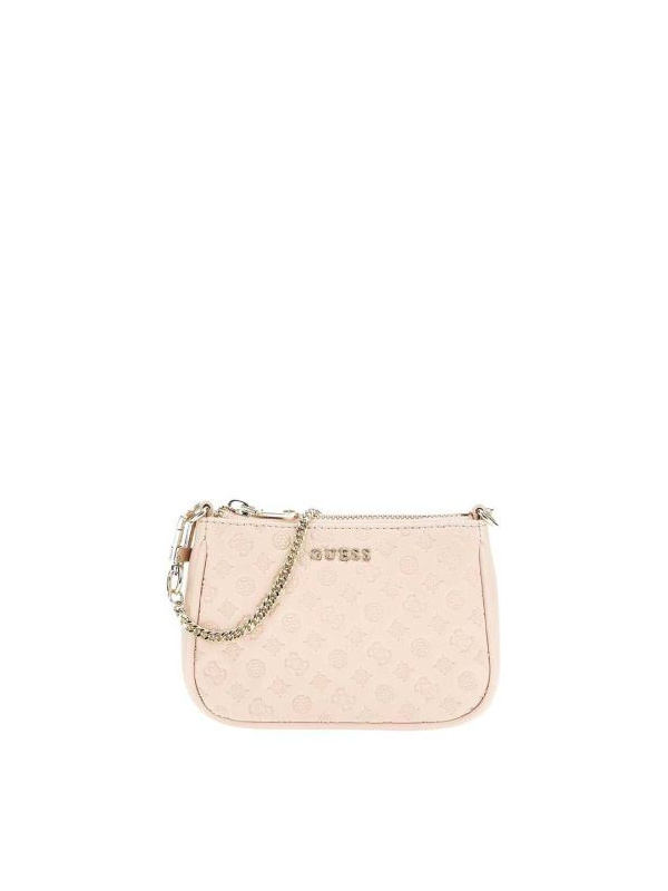 Guess roza mini ženska torba koja se može nositi kao neseser zahvaljujući lancu sa kukicom i malim dimenzijama