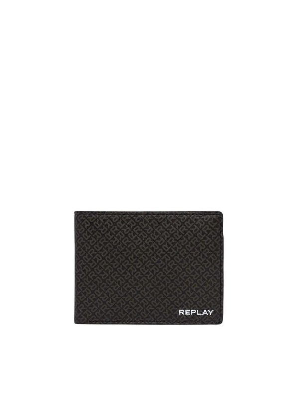 Replay crni novčanik sa smeđim logo printom