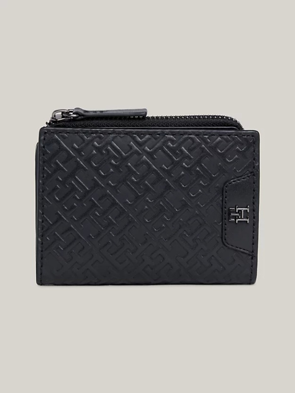 Osigurajte svoje osnovne potrepštine s ovim dvostrukim novčanikom na patentni zatvarač, izrađenim od kože s utisnutim monogramom i s više utora za kartice iznutra.