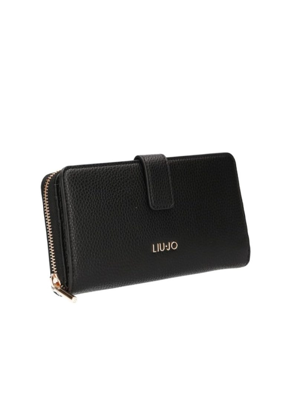 Liu-Jo novčanik od eko kože s zatvaračem i preklopom. Pretinac za knjižice zatvoren pritiskačem s dvanaest mjesta za kartice i dva ravna džepa. U dijelu s patentnim zatvaračem nalazi se još dvanaest mjesta za kartice, središnji džep s patentnim zatvaračem i četiri ravna prostora za novčanice ili dokumente.
