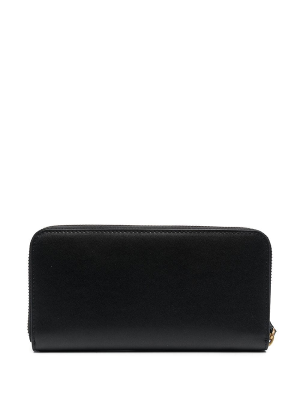 Kožni novčanik s logotipom iz PINKO-a od crne teleće kože, logo-pločice u zlatnoj boji, kopčanje patentnim zatvaračem sa svih strana, pregradnog odjeljka, unutarnjeg džepa s patentnim zatvaračem i reljefnog unutarnjeg logotipa.