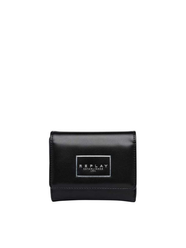 • Replay preklopni crni ženski novčanik sa logo ispisom u boji srebra
