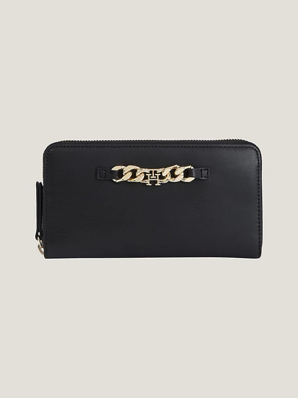 Unesite luksuzni štih u svoje svakodnevne potrepštine s ovim velikim novčanikom, s debelim lancem koji uokviruje koordinirani monogram.