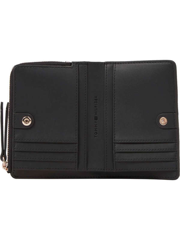 Klasičan i bezvremenski novčanik marke Tommy Hilfiger s logotipom na prednjoj strani i zatvaranjem na patentni zatvarač. Savršen novčanik za obje kartice, potvrde i slično.