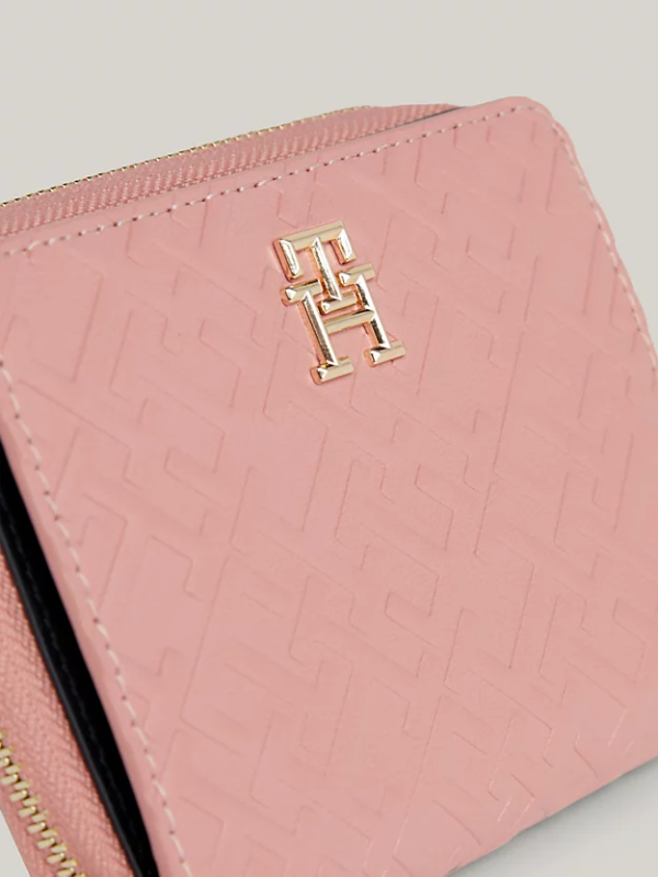Ovaj elegantni Tommy Hilfiger novčanik s patentnim zatvaračem izdignut je utisnutim TH monogramima po cijeloj površini za opipljivu notu i pločicom s logotipom na prednjoj strani.
