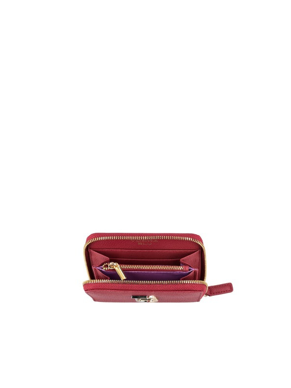 Ovaj mali novčanik od tamnocrvene kože bit će osnovni dodatak u vašoj omiljenoj mini torbi. Neka vas njegov smanjeni dizajn ne zavara. S unutarnje strane ima čak pet pretinaca, uključujući i onaj s patentnim zatvaračem za spremanje kovanica. Metalni logo na prednjoj ploči privlačan je detalj. Ovaj novčanik je opremljen čvrstim metalnim zatvaračem.
