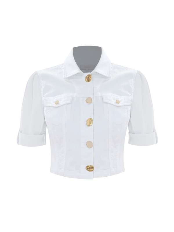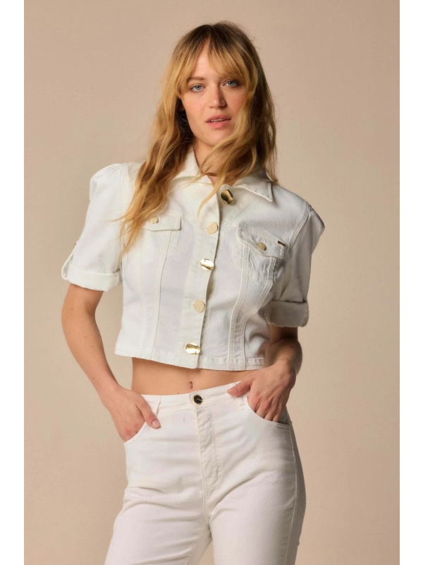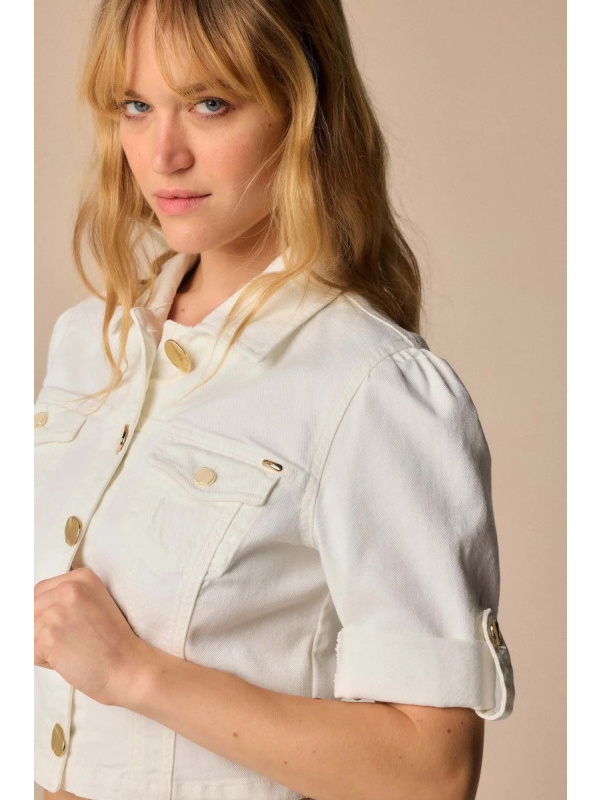 Ženski bijeli Kocca cropped fit sako s gumbima u boji zlata