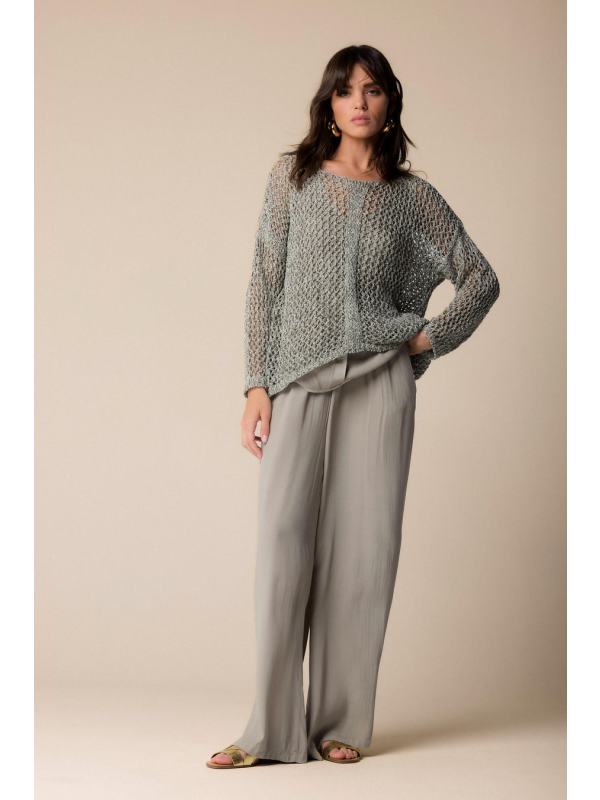 Ženski sivi perforirani Kocca pulover s triko umetcima