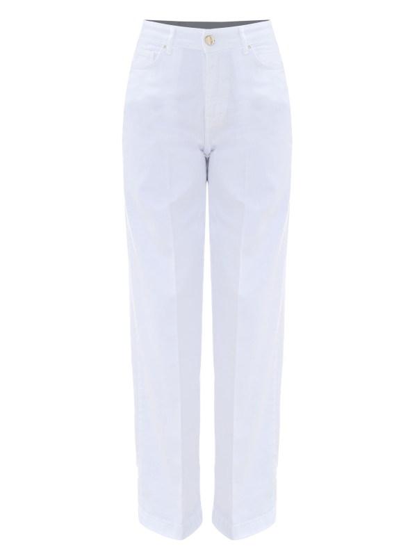 Ženske ležerne bijele Kocca hlače pune dužine u jeans stilu s kromiranim gumbima i nitnama uz prednje džepove