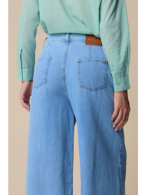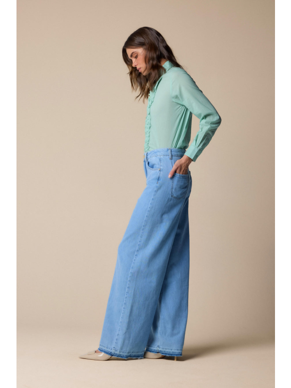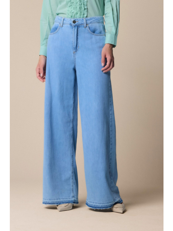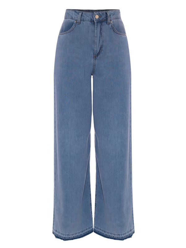 Ženske comfort fit Kocca farmerke sa kromiranim gumbima, dvostrukim šavovima na dnu, pohabanim rubovima i širokim nogavicama