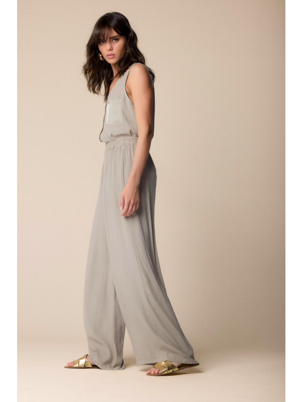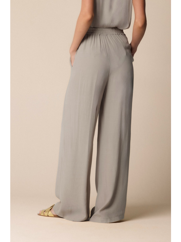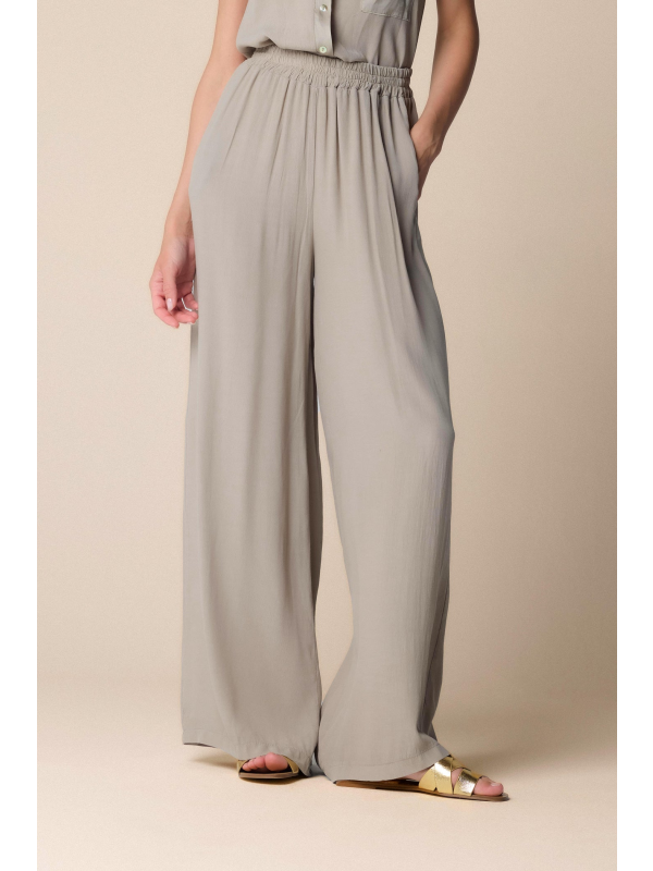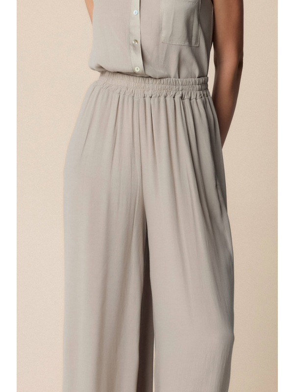 Ženske greige Kocca hlače sa širokim nogavicama, naborom i elastičnim strukom