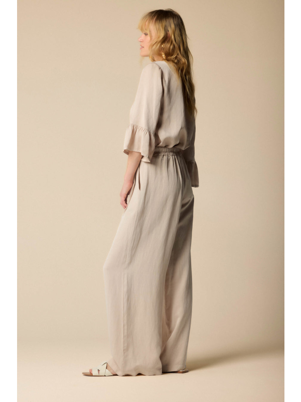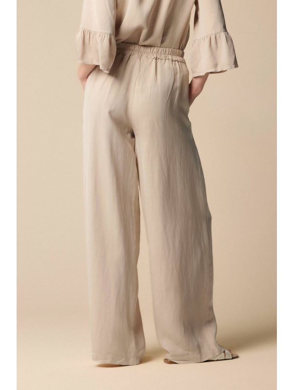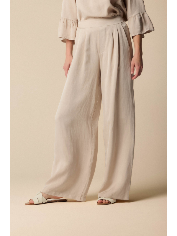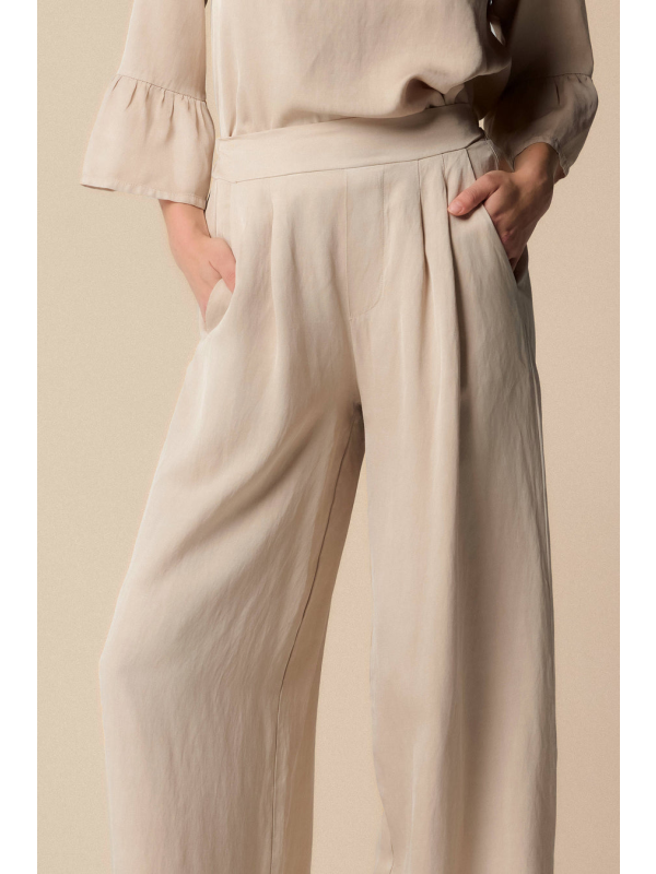 Ženske široke elegantne Kocca bež hlače s naborima