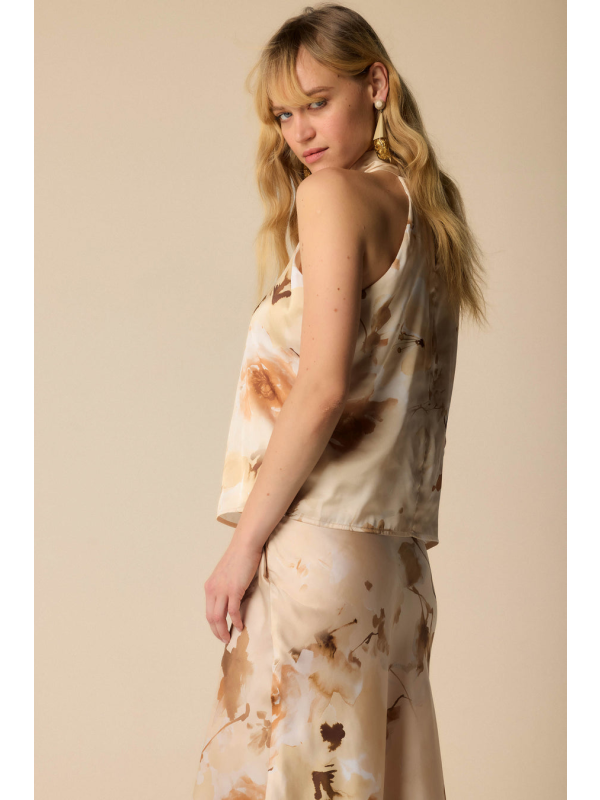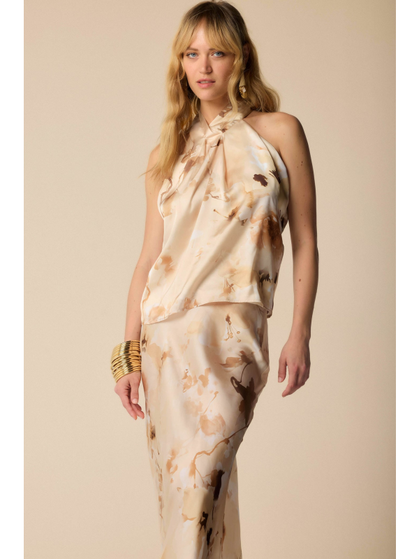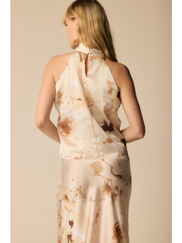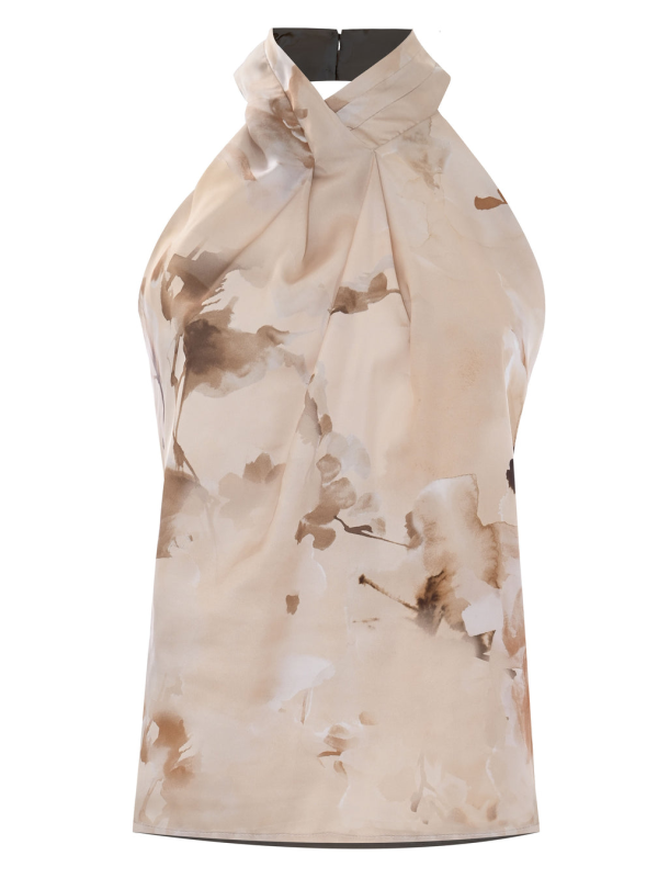 Mekana draperija na prednjoj strani daje topu s uzorkom i ovratnikom suvremen i elegantan ugođaj.