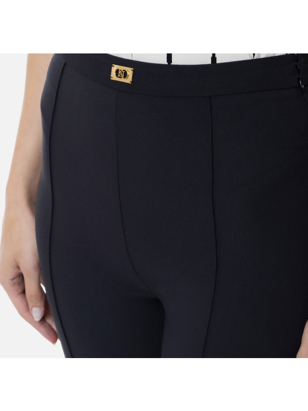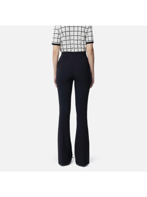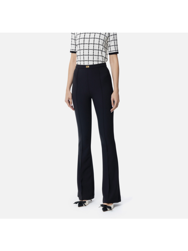 Ženske crne Elisabetta Franchi hlače od rastezljivog krepa s logom i "zvono" nogavicama