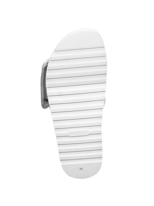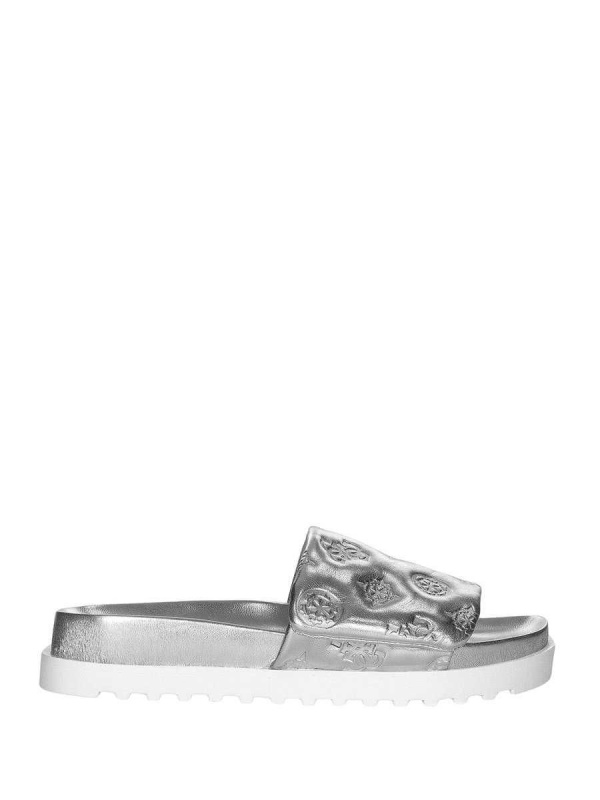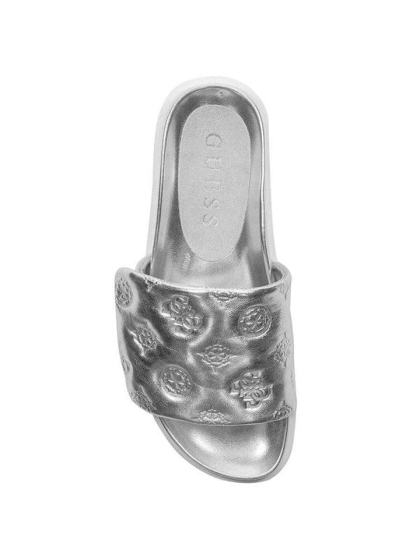 Ženske srebrene Guess 'Fabio' papuče sa širokim logo kaišem.