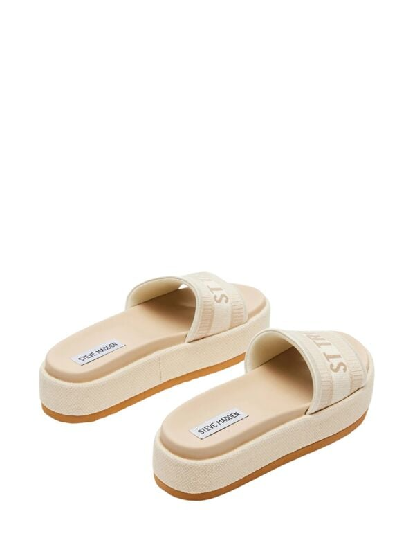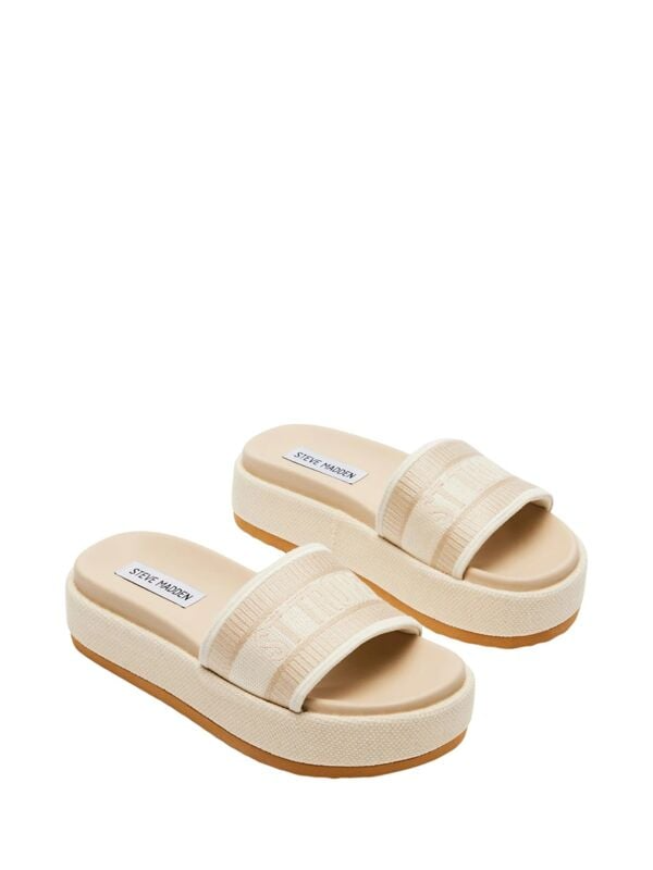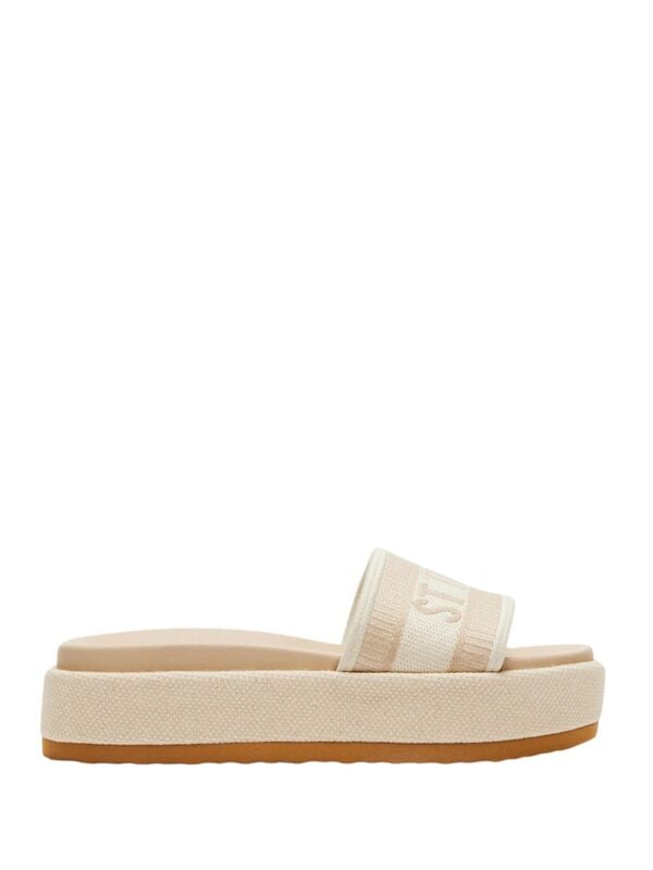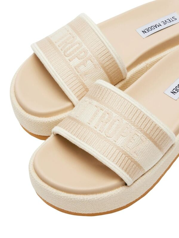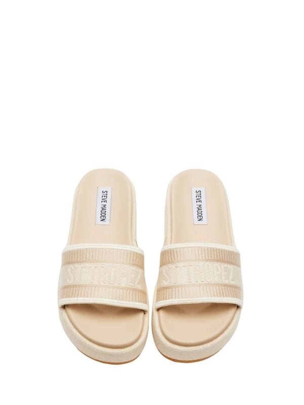 Steve Madden Knoxley bež ženske papuče sa "ST TROPEZ" natpisom.