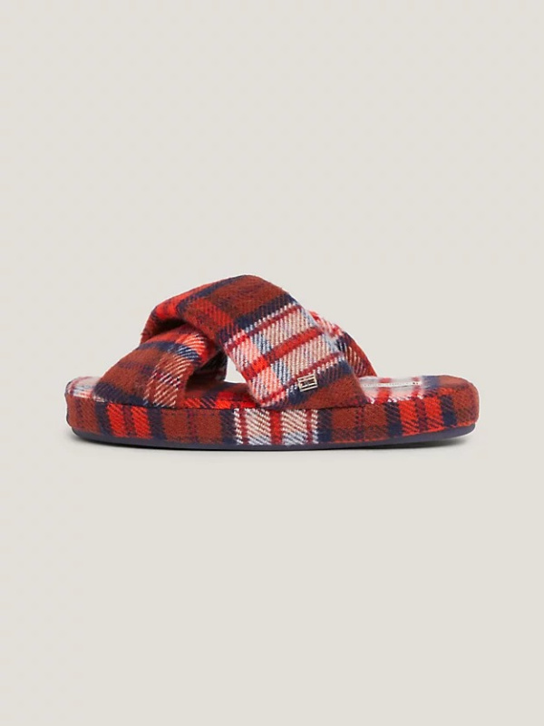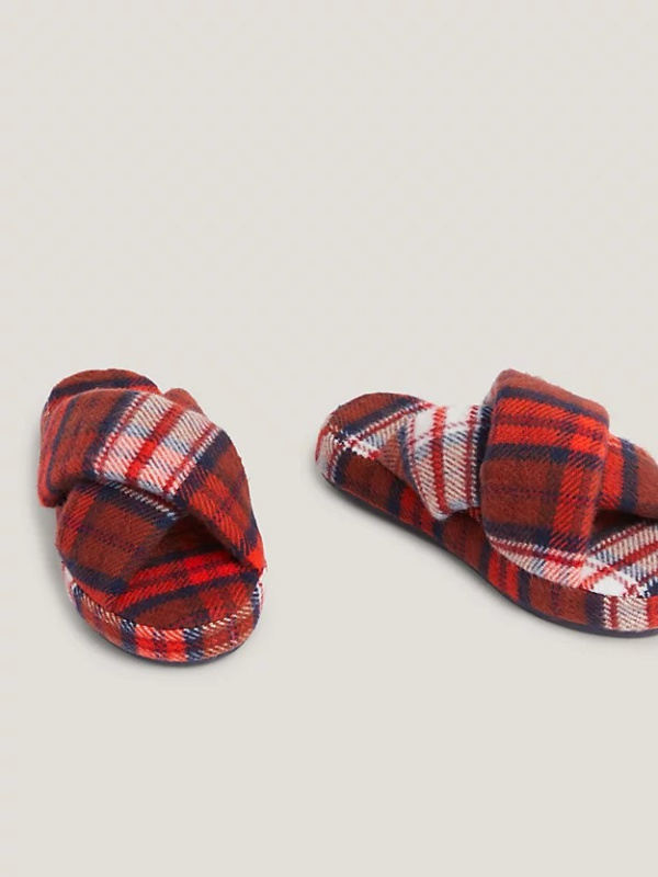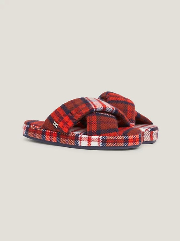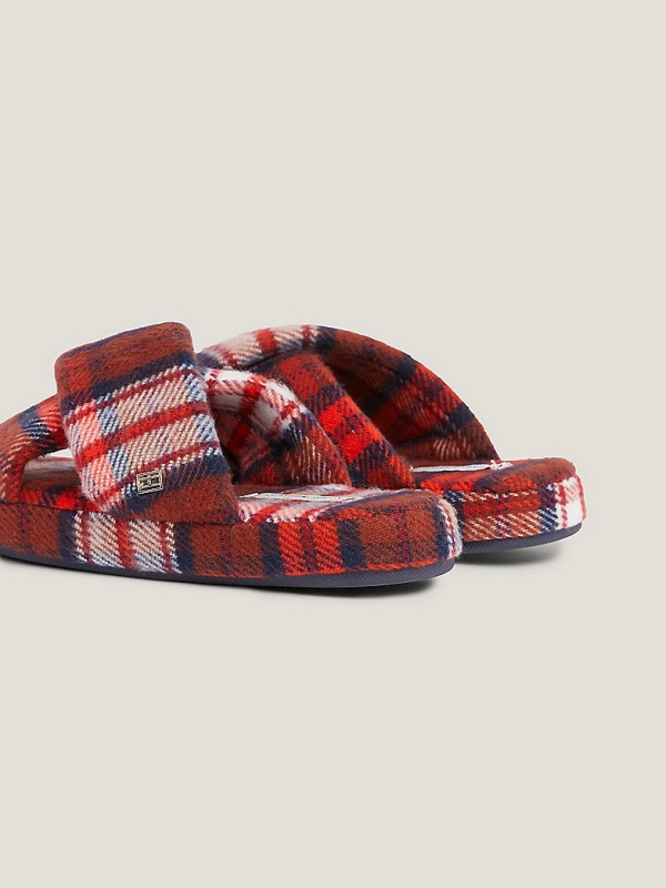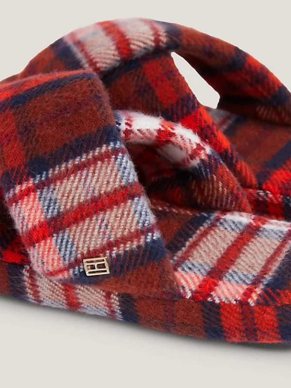 Dodajte klasičnu notu svojoj kolekciji kućne obuće s ovim papučama u obliku klizača s kariranim dizajnom od tartana.