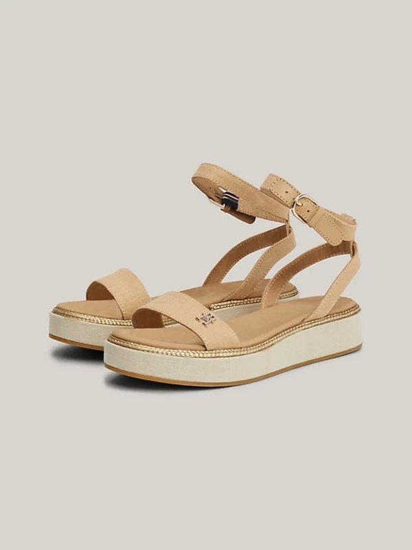 Za elegantne izlaske okupane suncem obujte ove sandale ravnog oblika izrađene od lana i elegantno ukrašene pločicom TH Monogram.