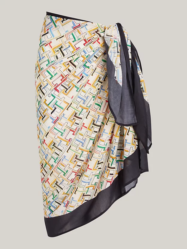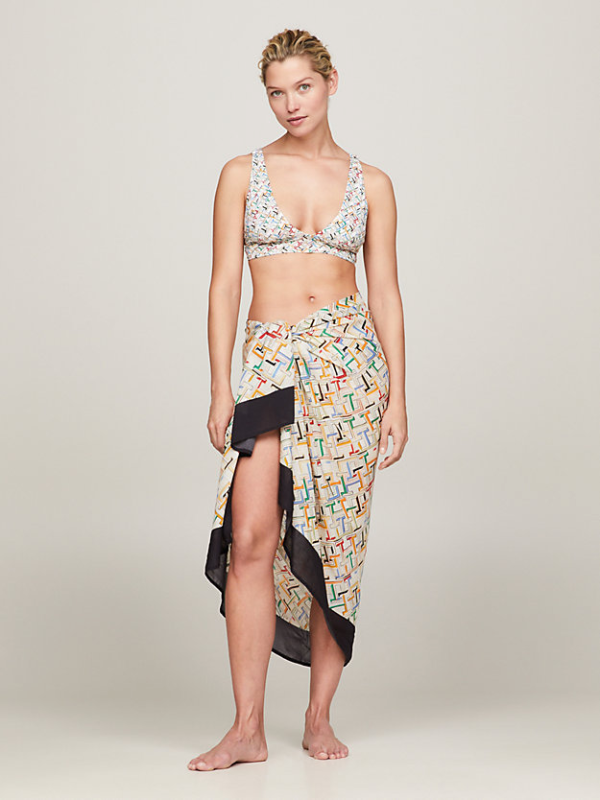 Živahni ispis TH monograma po cijeloj površini i kontrastni rubovi čine ovaj prozračni održivi pareo modalne mješavine upečatljivim dodatkom vašoj garderobi.