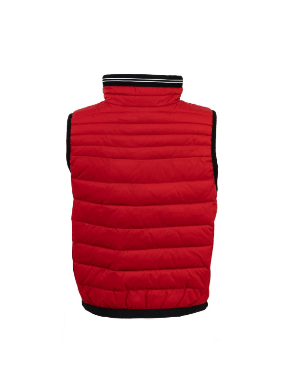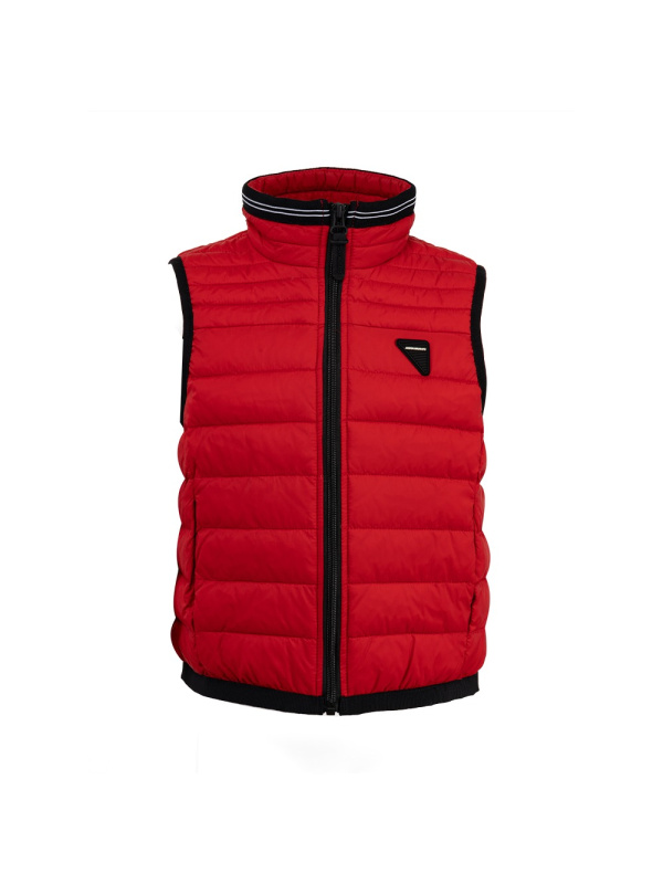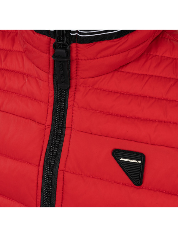 Crveni prošiveni ANTONY MORATO prsluk s kontrastnim crnim umetcima na rubovima i ušivenim logotipom može igrati ulogu vanjske odjeće ili izolacijskog sloja u kombinaciji s jaknom ili kaputom kada vani postane hladno.