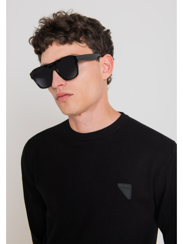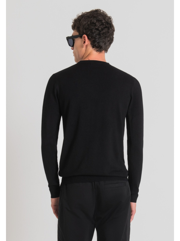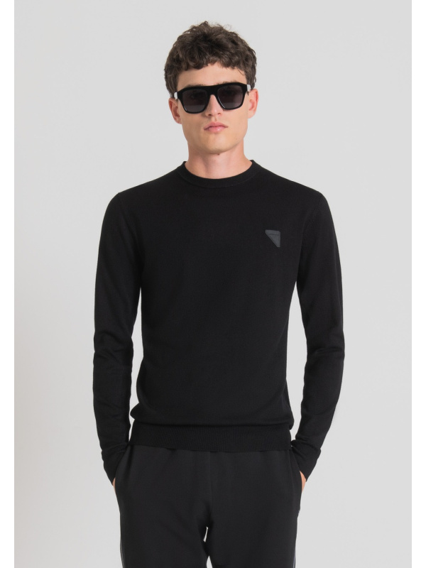 Suvremeni stil i udobnost koegzistiraju u ovom džemperu s okruglim izrezom i dugim rukavima. Odjevni predmet izrađen je od jednobojne rastezljive mješavine viskozne pređe. Antony Morato je dizajnirao ovaj model s cjevastim ovratnikom, rebrima na zapešćima i na dnu, te uz bokove i na rukavima. Sadrži diskretne i profinjene detalje, kao što je metalna ploča s logotipom i gumiranom podlogom na lijevoj strani prsa.