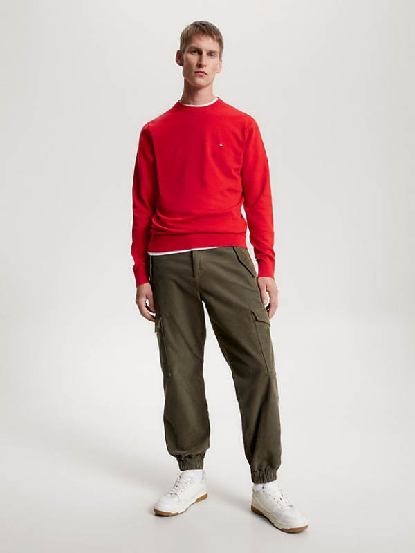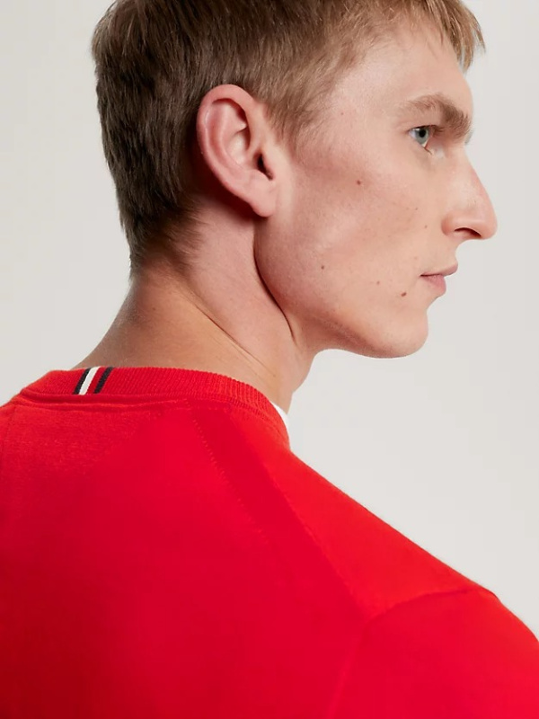 Odlučite se za elegantno-ležeran izgled bez napora u ovom džemperu s okruglim izrezom, izrađenom od čistog organskog pamuka i završenim detaljima s potpisnom trakom.