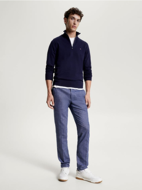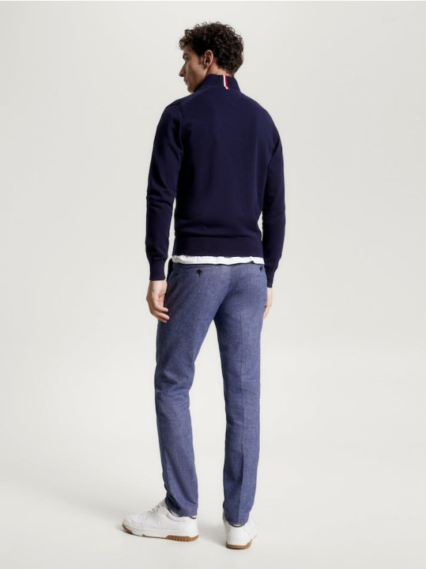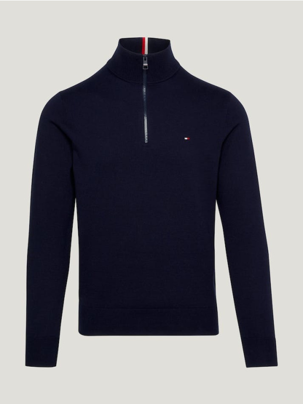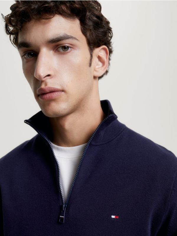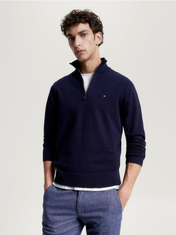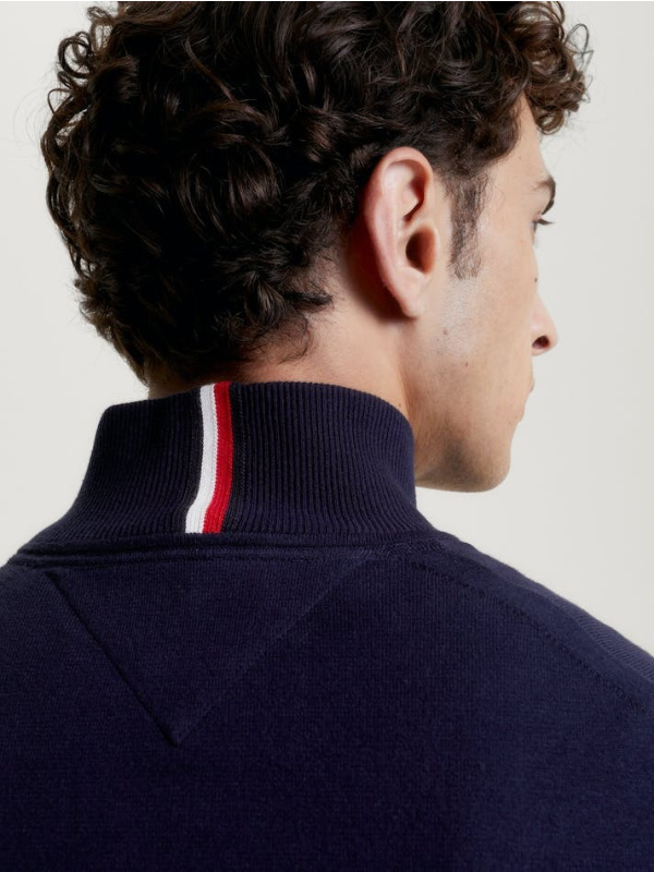 Traka s potpisom na zatiljku dodaje dašak boje ovoj elegantnoj neupadljivoj trenirci s atletskim kopčanjem na četvrt patentni zatvarač.