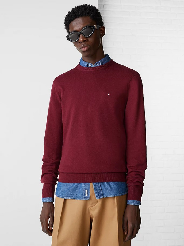 Muški tamnocrveni Tommy Hilfiger pulover s okruglim izrezom