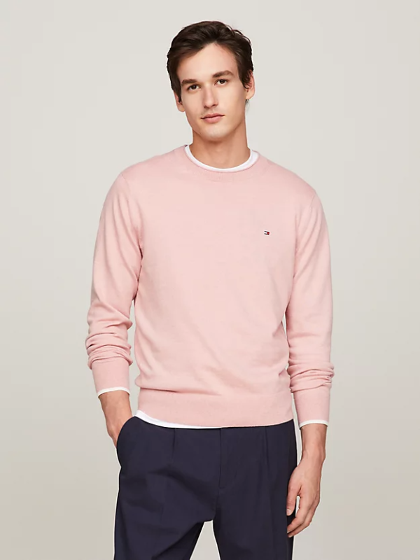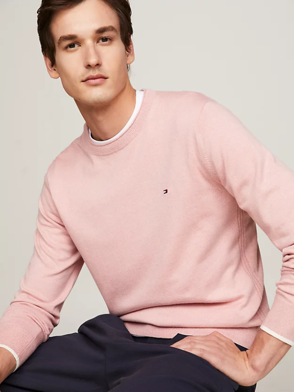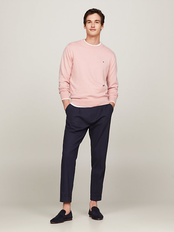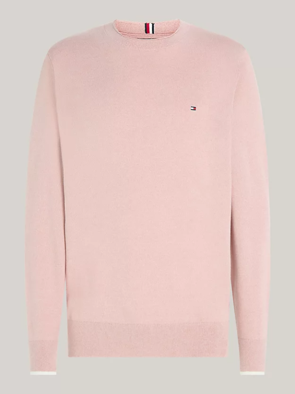 Poboljšajte svoj slojeviti izgled ovim bezvremenskim Tommy Hilfiger puloverom, pletenim od organskog muline pamuka za gladak izgled i laganu toplinu.