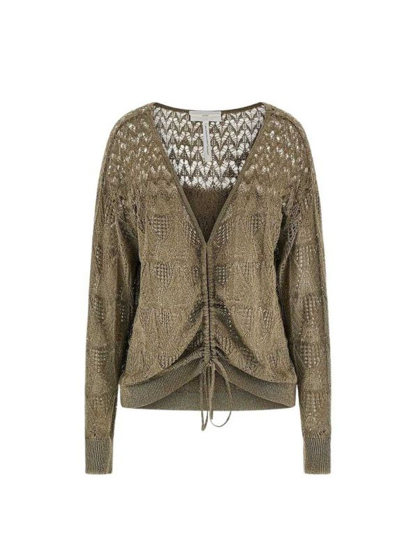 Guess Clarissa pleteni ženski zeleni pulover sa podesivim vezicama naprijed