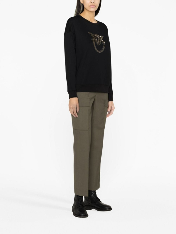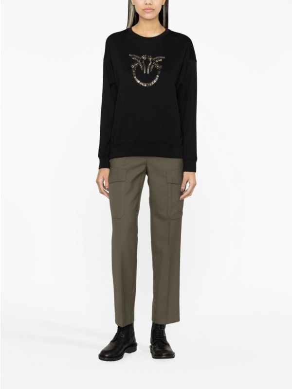 PINKO crna pamučna majica 'Love Bird' ukrašena kristalima